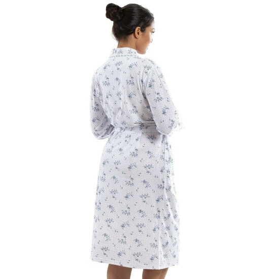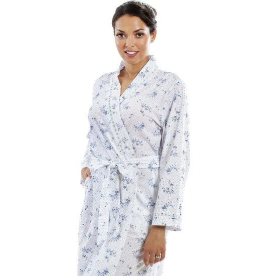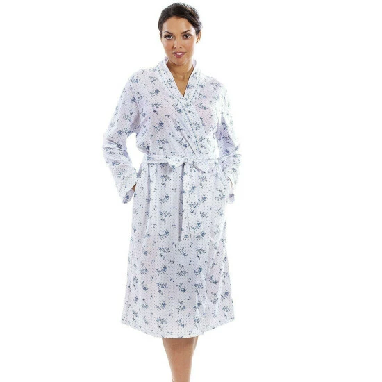 Our Porcelain Floral Wrap is made from elegant lightweight material, has two front pockets and a tie front fastening. The design consists of spots, flowers and delicate embroidered around the neckline.