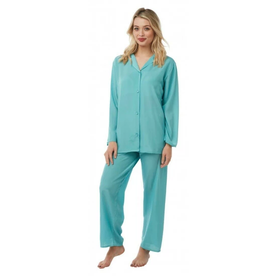 Choose from one of these fabulous full length long sleeve pyjamas, featuring button up front and a small pocket on the chest and an elasticated waist. These pyjamas are lightweight and cling free. These pyjamas make a great addition to any woman’s nightwear collection.